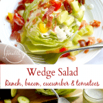 This wedge salad recipe is super simple to make and so yummy. Better than a restaurant! Made with bacon, cucumber tomato, homemade ranch.